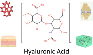 هیالورونیک اسید (Hyaluronic acid؛ که به اختصار HA نیز نامیده میشود) یک گلیکوزآمینوگلیکان خطی و غیرسولفاته است که از واحدهای تکراری دیساکارید N-استیلگلوکوزآمین و D-گلوکورونیک اسید از طریق پیوندهای گلیکوزیدی β-1,4 و β-1,3 تشکیل شده است. این پلیساکارید آنیونی در شرایط فیزیولوژیک بهصورت نمک سدیم (هیالورونان یا سدیم هیالورونات) وجود دارد و یکی از اجزای اصلی ماتریکس خارجسلولی بافت همبند، بهویژه در پوست، مایع سینوویال، بندناف و زجاجیه چشم است. برخلاف سایر گلیکوزآمینوگلیکانها، هیالورونیک اسید فاقد گروههای سولفات و فاقد اتصال کووالانسی به پروتئینهای هستهای (پروتئوگلیکان) است و بهصورت آزاد و با وزن مولکولی بسیار بالا (۱۰⁵ تا ۱۰⁷ دالتون) در فضای خارجسلولی حضور دارد.